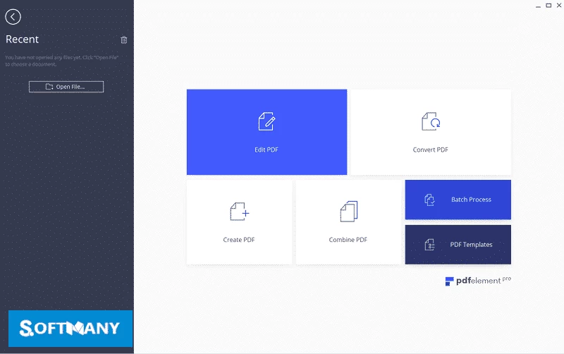 Aplikacja, z uproszczonym interfejsem, oferuje wiele zaawansowanych funkcji, takich jak automatyczne rozpoznawanie formularzy, ekstrakcja danych z formularzy itp. Zapewnia prosty przepływ pracy, ponieważ jednym kliknięciem można stworzyć atrakcyjny formularz, korzystając z gotowych szablonów. Edytor tekstu z czcionkami i stylami oferuje inteligentne rozpoznawanie akapitów i eksport danych do dowolnego wybranego formatu. Na ekranie głównym znajdują się następujące główne sekcje: